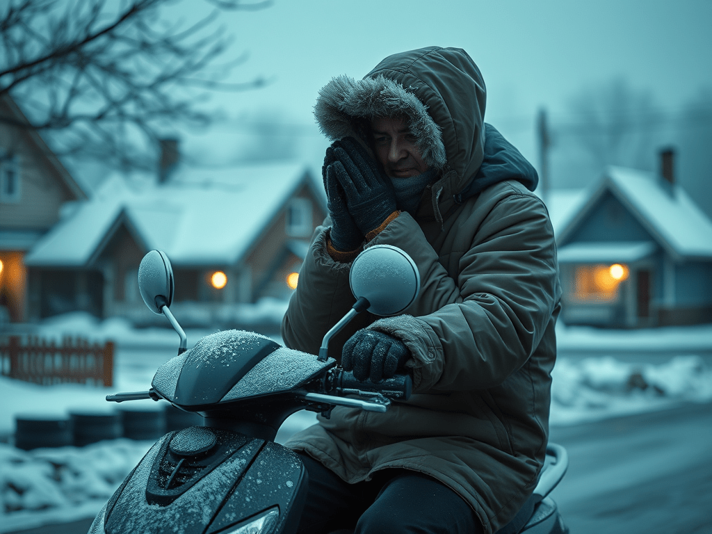 It w cold yesterday, super cold. I w having to stop every four hundred meters on my scooter and shake my hands. When I got home I w super frozen.