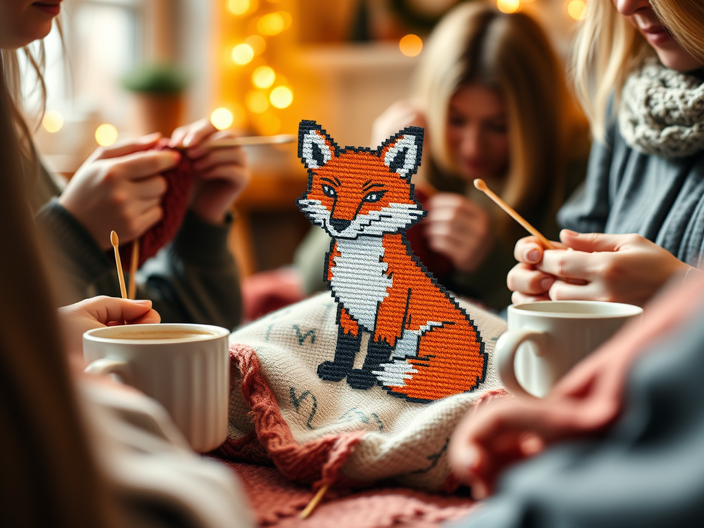 I got given a little foxy, w w nice. It’s cross stitch. I had forgotten my knitting. It went super quick, I only got a little done. I’ve not rly done cross stitch before and was making sure that it w perfect. I got a lot of great help from the girls.